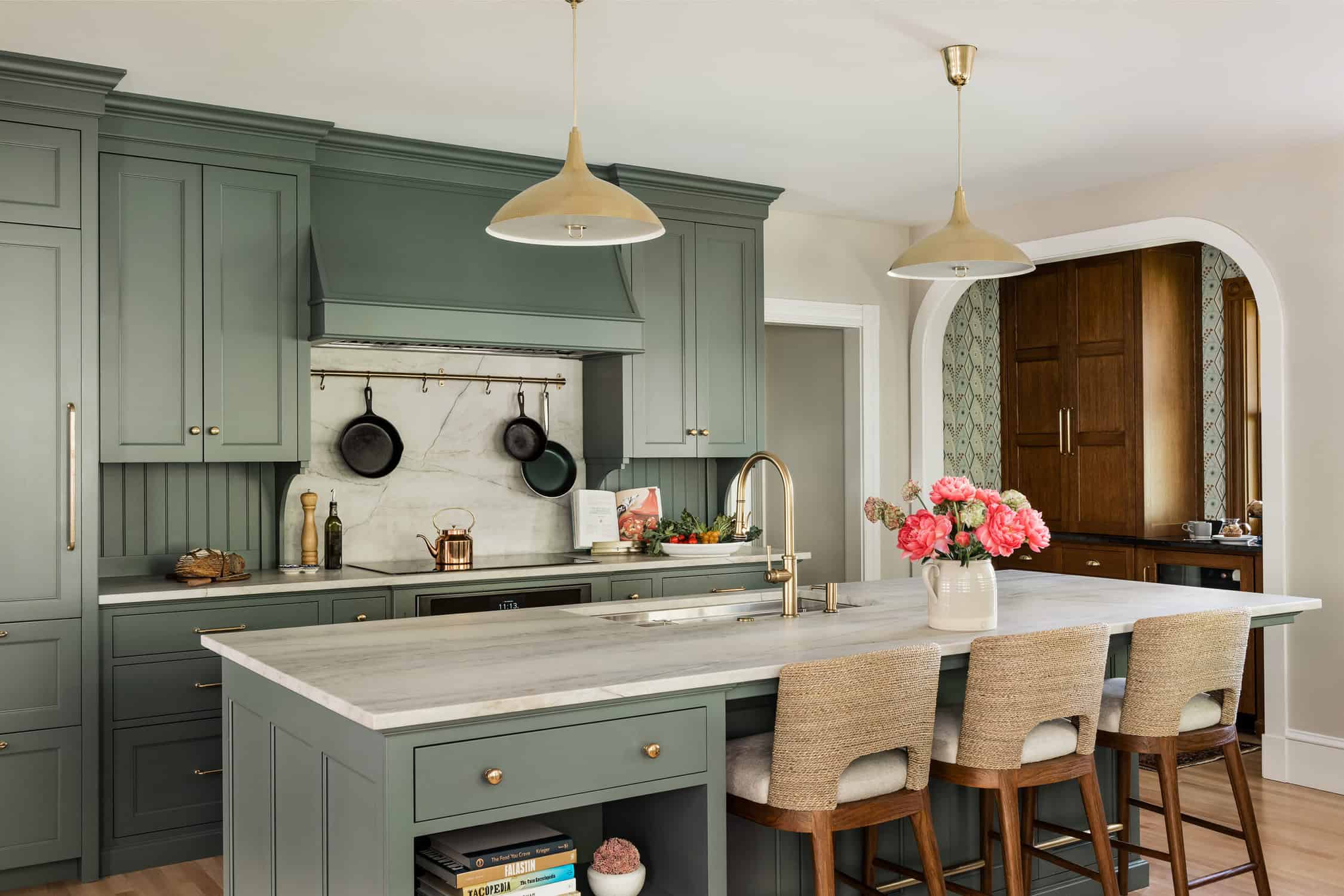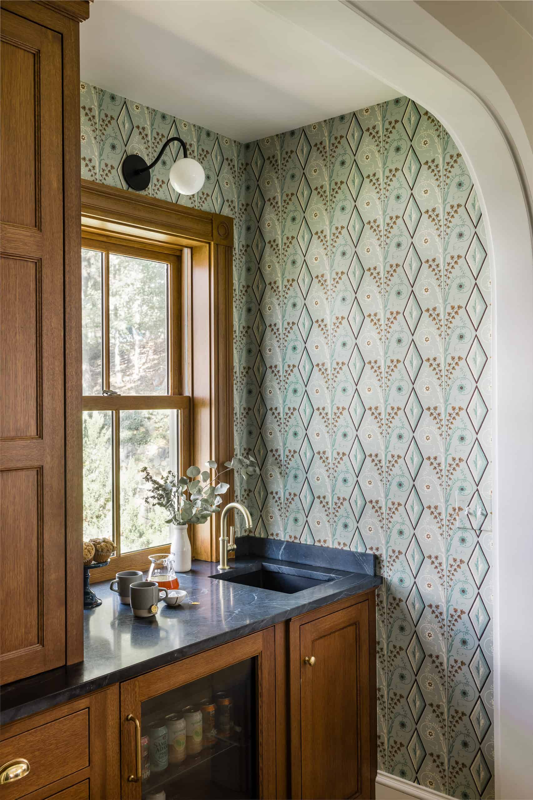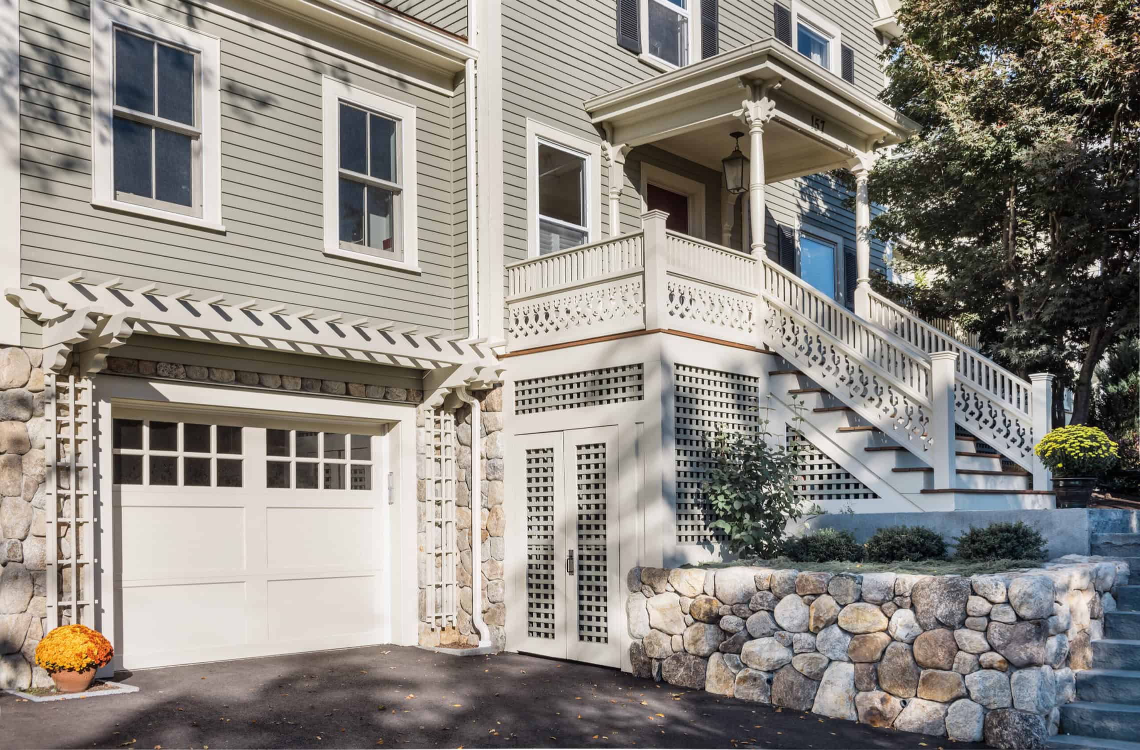 We expanded, updated, and reorganized this house in a historic district in Arlington. We created a new kitchen, dining room, office, garage, and mudroom. We reconfigured the landscape, creating a gracious entry sequence at the front and a terrace covered by a trellis at the rear. We created a room lined with windows to connect the interior to the beautiful yard.