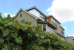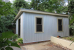 An existing storage shed behind the house was given a similar treatment, refurbished with durable metal siding like one of the rooftop volumes.