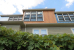 Rather than trying to seamlessly blend with the existing house, the additions are in a more modern style: three boxes clad in three different materials.