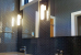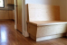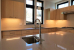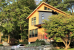 This house took the place of an existing house in a residential neighborhood. Its contemporary style stands out from the surrounding houses, but its scale is in keeping with the area. Projecting canopies wrapping corners outside provide protection from the weather, and are echoed in cabinet and shelving details on the interior.
