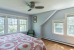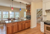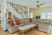 The house is tailored to the challenging site. The main entrance is on the lowest level. A large opening provides a connection between the foyer and the living areas on the middle level. A screened porch spills onto the terrace and yard.